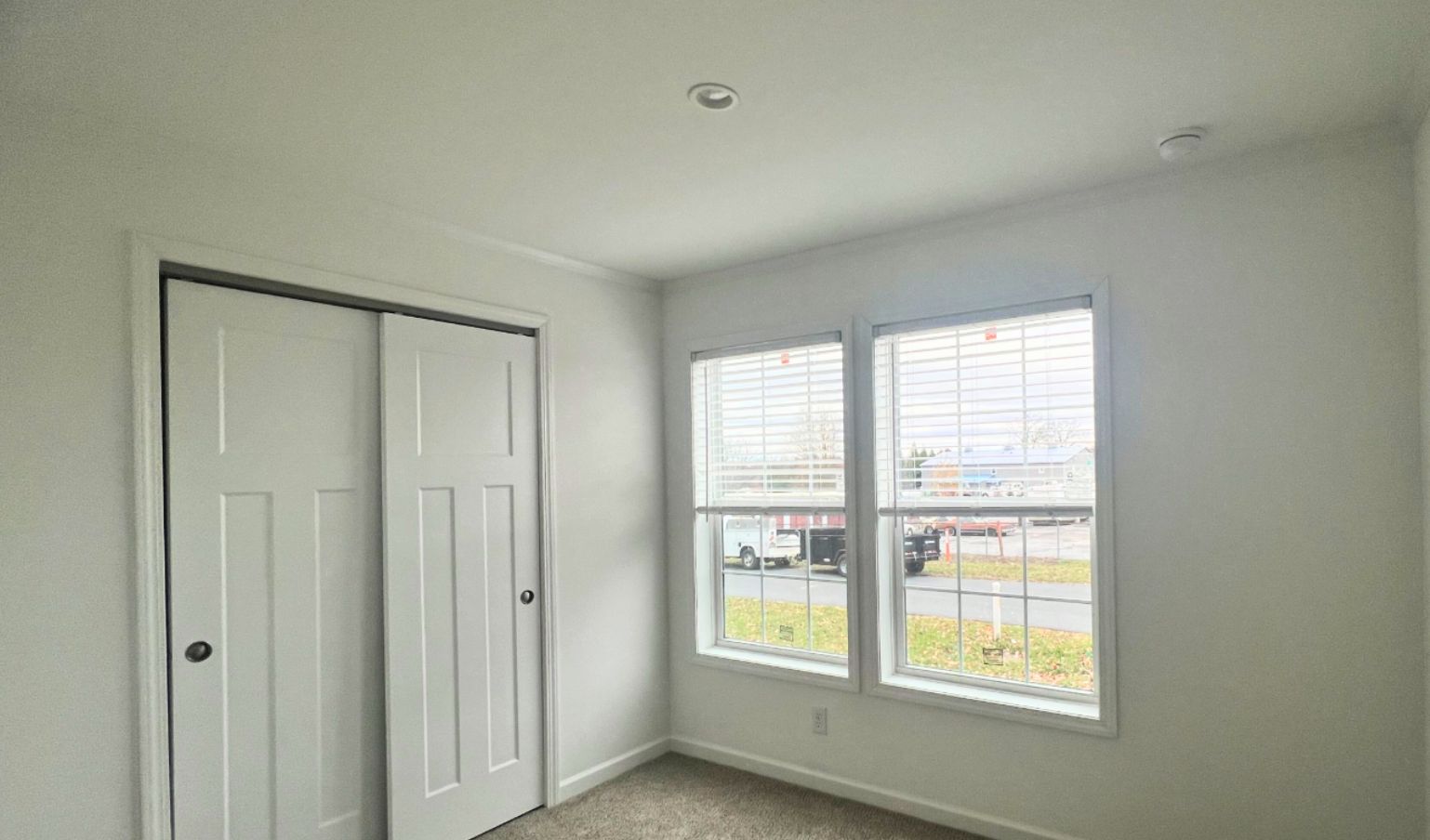 Primary suite includes walk-in closet, 36″ vanity and double shower with built-in seats. Off street paved parking and central air included.