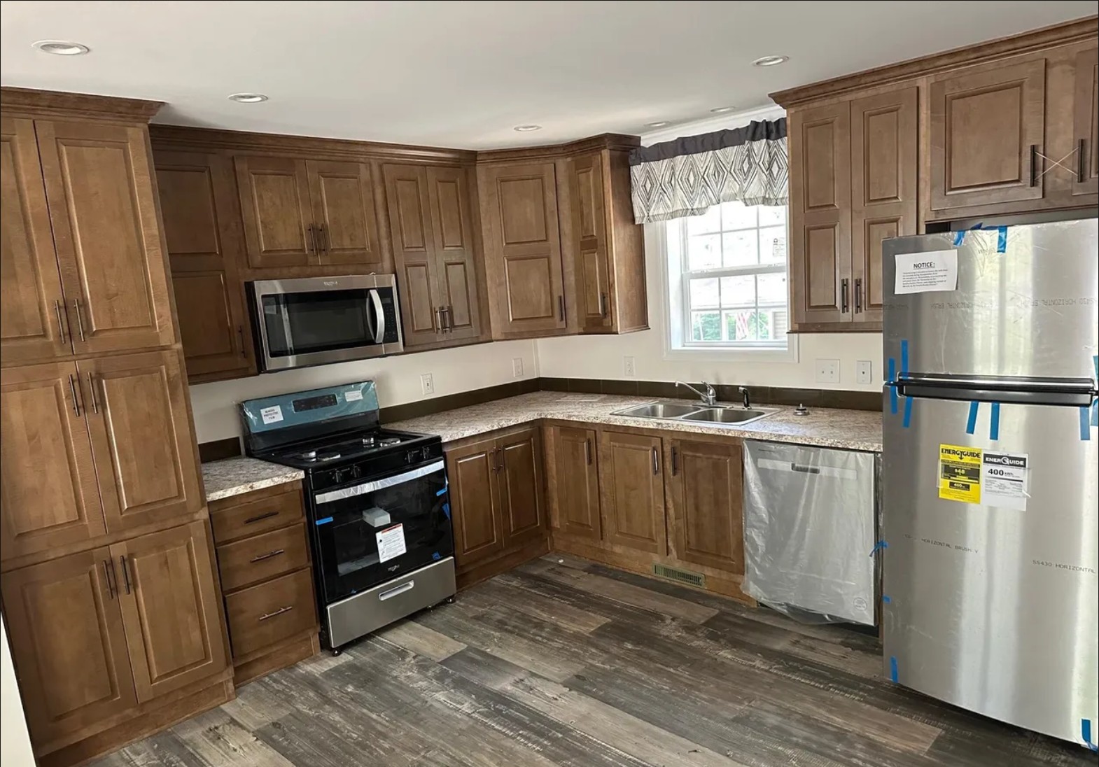 This new 3 bed 2 bath Lexington Limited Skyline home comes with an extended warranty up to 7 years. There is drywall throughout. The open concept lends itself to today’s modern living. When you are not swimming or golfing ,you can enjoy a barbeque on the front or back deck. Don’t miss this charmer. Home comes with an 8′ x 8′ shed.