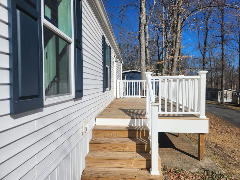 New 2 bed 1 bath home with front deck. Open living area with coat closet and a kitchen with double sink, dishwasher and pantry. Home has 2 bedrooms , hall bath and an area for a washer and dryer. The home comes with central air, an 8’ x 8’ shed and a 1 year manufacturer warranty. Schedule your showing today.