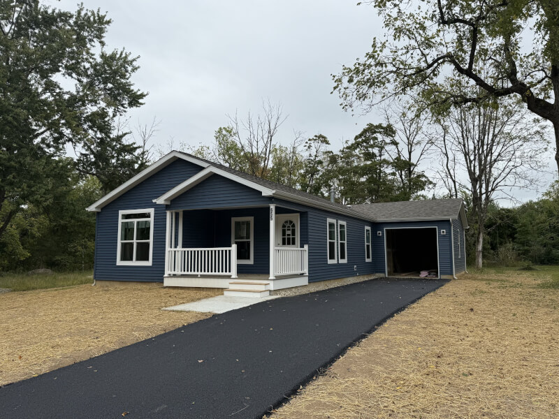New three bedroom two bath home. Features open concept with a large front deck and rear patio. Large lot including a custom shed
