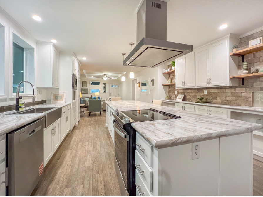 Three Bedroom , two bath home with custom kitchen 1/2 porch Garage model